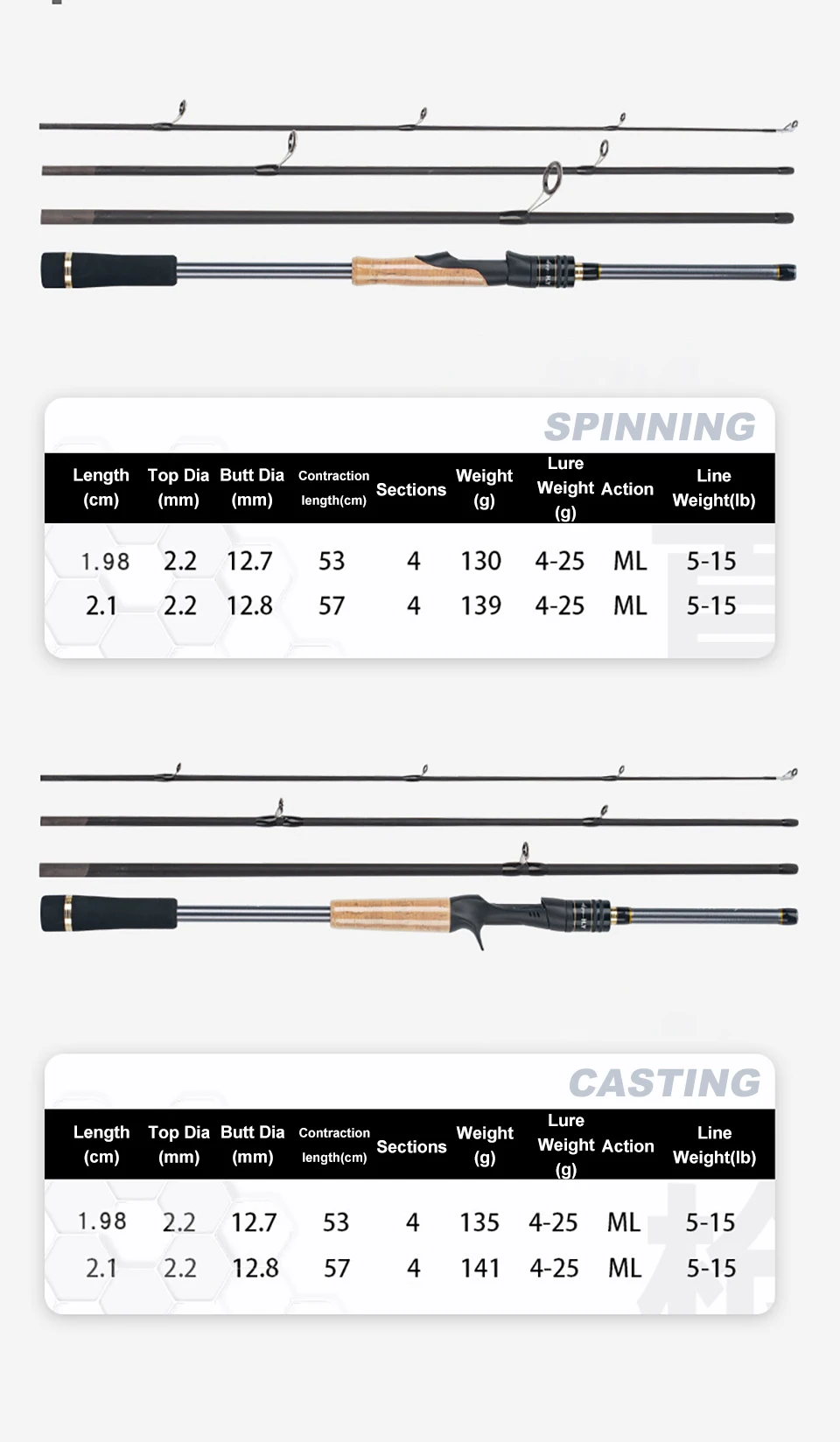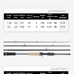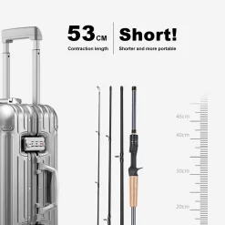 Cần câu du lịch 4 khúc thiết kế gọn nhẹ, dễ mang theo, phù hợp cho anh em đi câu xa, đi phượt hoặc câu giải trí hàng ngày. Sử dụng chất liệu carbon cao cấp giúp cần vừa nhẹ vừa khỏe, đảm bảo độ nhạy cao khi câu lure.