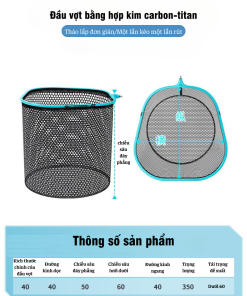 Kích thước đầu vợt: 40 – 55 cm (nhiều size cho lựa chọn).