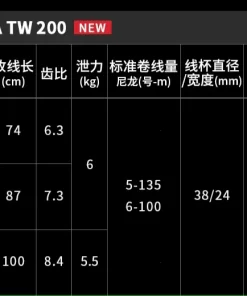 Thông số sản phẩm: Máy câu DAIWA Tatula TW 200 2025