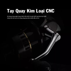 - Tay quay CNC: Gia công từ một khối hợp kim duy nhất, tay quay không chỉ bền chắc mà còn mang lại cảm giác cầm nắm vững vàng, giúp cần thủ tự tin khi chiến đấu với cá.