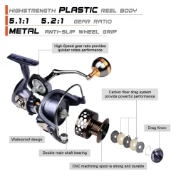Tốc độ thu dây cao: Tỷ số truyền động 5.2:1 giúp thu dây nhanh chóng, tiết kiệm thời gian và công sức.
