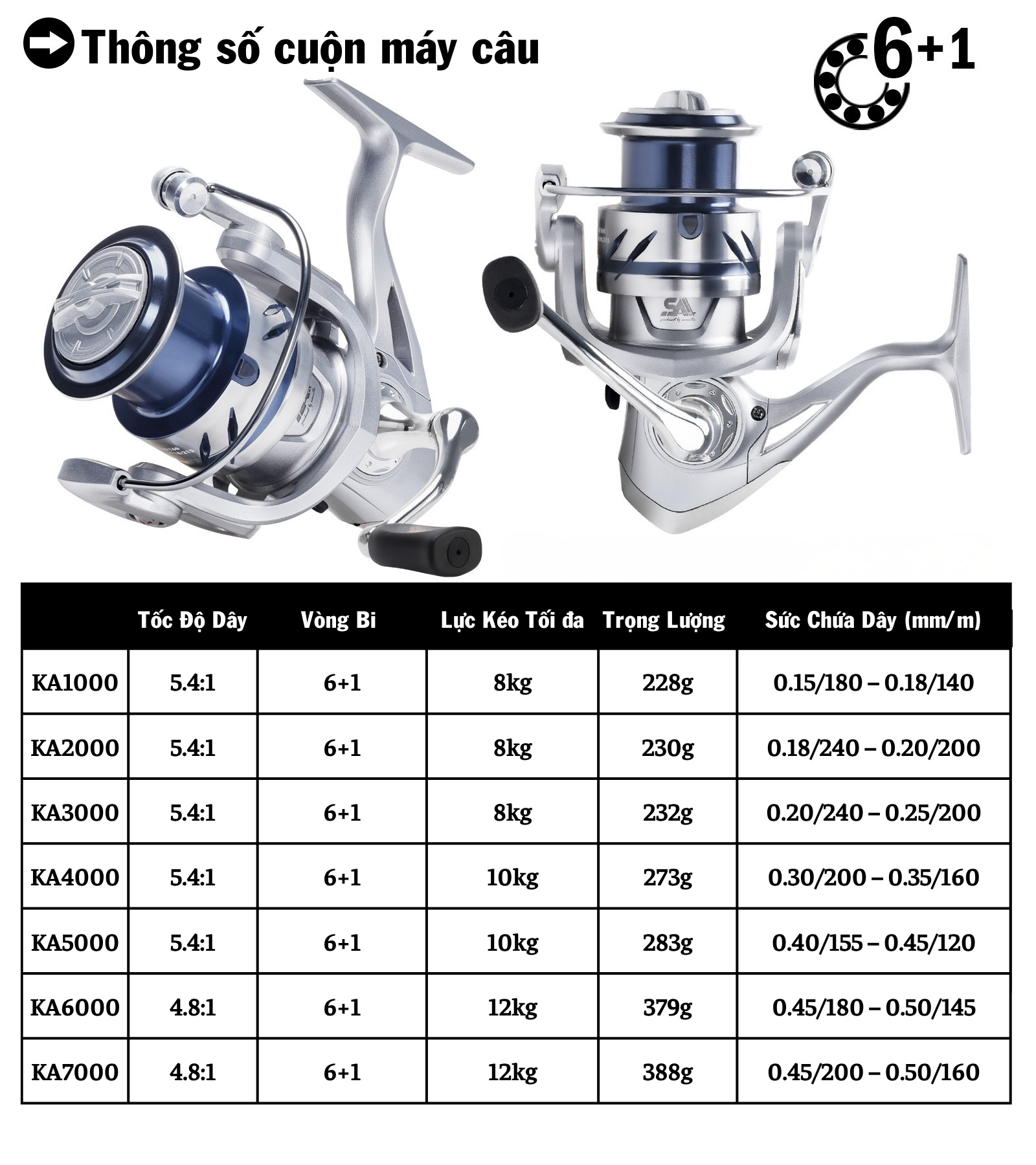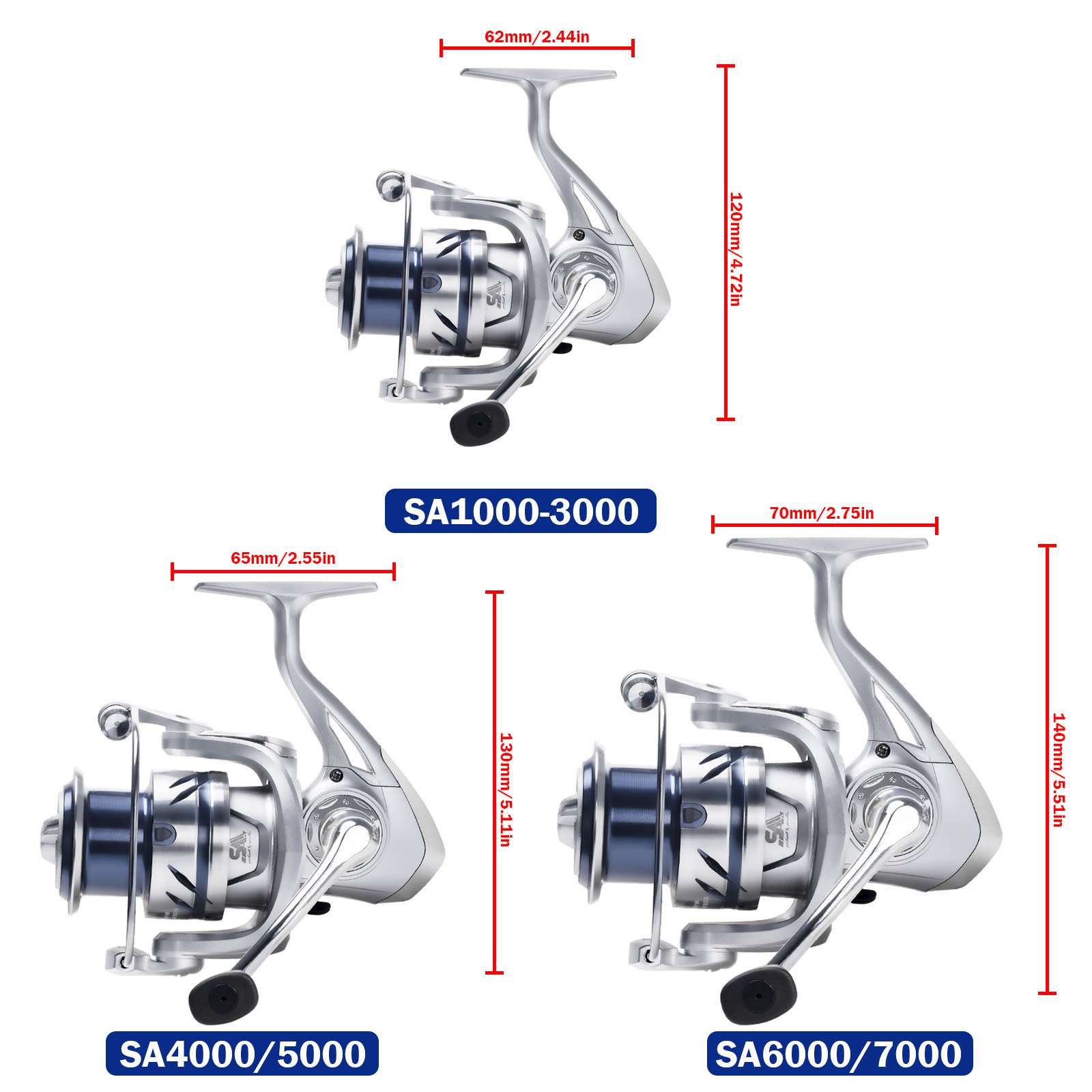 Máy câu Samola có đủ các size từ 1000 – 7000, phù hợp cho mọi phong cách câu: từ câu sông, câu hồ, đến câu biển gần bờ.