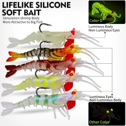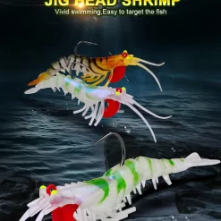 🦐 Mồi Tôm Silicone Phát Sáng – Mồi Giả Mềm Bionic Đầu Jig Kim Loại
